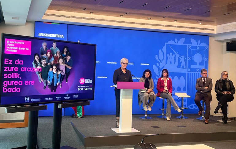 Emakunde, las diputaciones forales de Araba, Bizkaia y Gipuzkoa y EUDEL han presentado hoy la campaña interinstitucional del 25 de noviembre, Día Internacional para la eliminación de la violencia contra las mujeres.