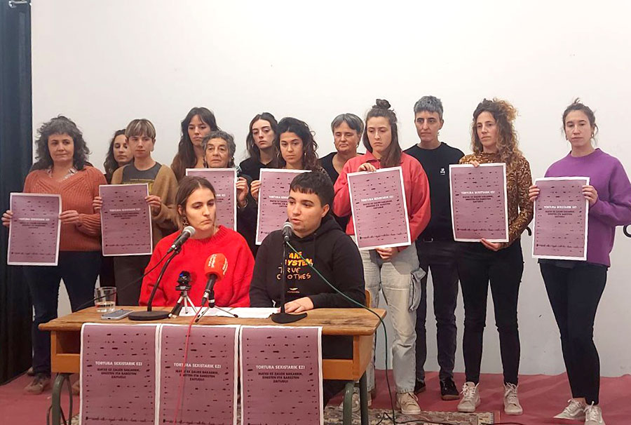 Indarkeria matxistak hamaika aurpegi dituela sarritan salatu izan dugu Mugimendu Feministako eragile eta kideok. Askotarikoak dira hartzen dituen formak egoera, lurralde eta gorputz bakoitzean, eta irakurketa honen bidez Euskal Herrian urte luzez gertatutakoa salatu eta gogora ekarri nahi dugu, tortura sexistarekin gertatutakoa, hain zuzen ere. Urte luzez Espainiako eta Frantziako estatuen funtzionario diren gorputz polizialek sistematikoki egindakoa, eta hori ere indarkeria matxistaren aterkipean kokatu behar dugu.